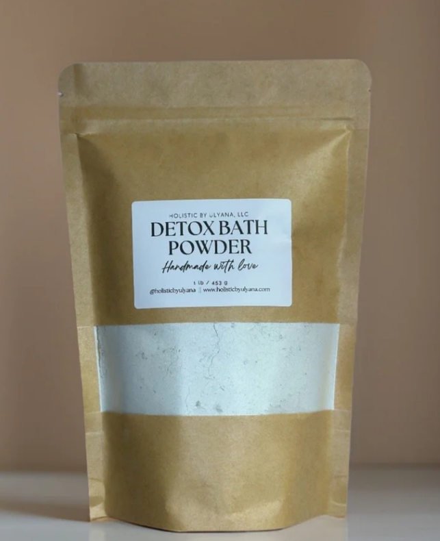 Detox Bath Powder – A mineral-rich, stress-relieving soak with magnesium, bentonite clay, and Epsom salt to help flush toxins, ease tension, and support hormone balance.